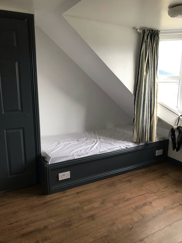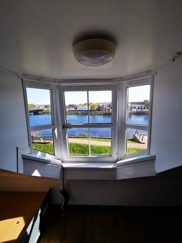 The room is a good size single room but does have ceiling coombs. Tv river views