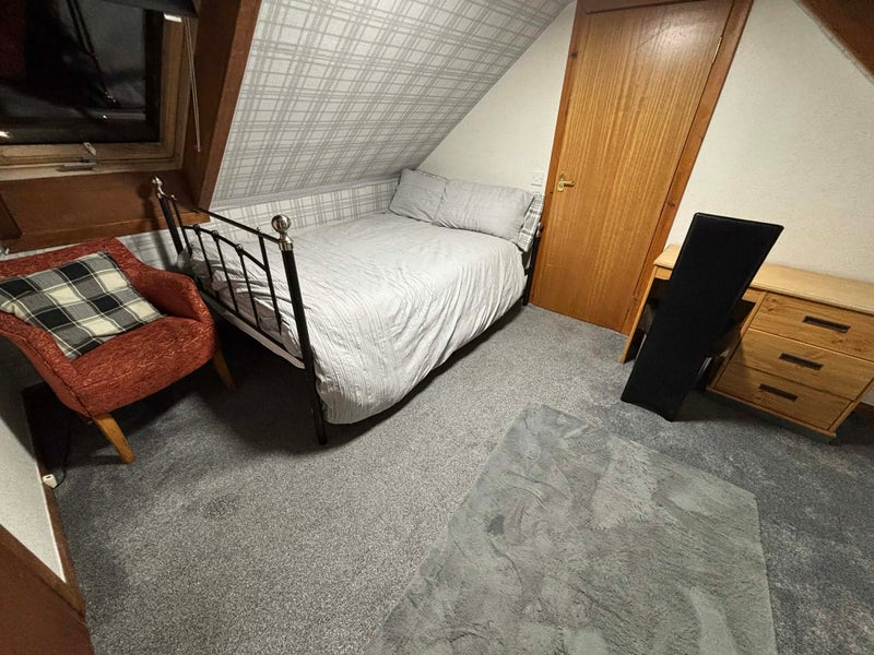 I have an attic double bedroom with a private en‑suite available in a friendly shared flat on Harrowden Road, Inverness. The location is ideal, just a short walk from the city centre and close to shops, bus routes, and local amenities.