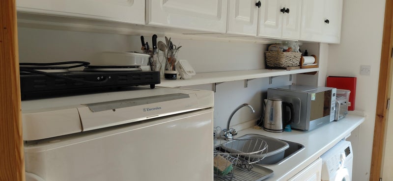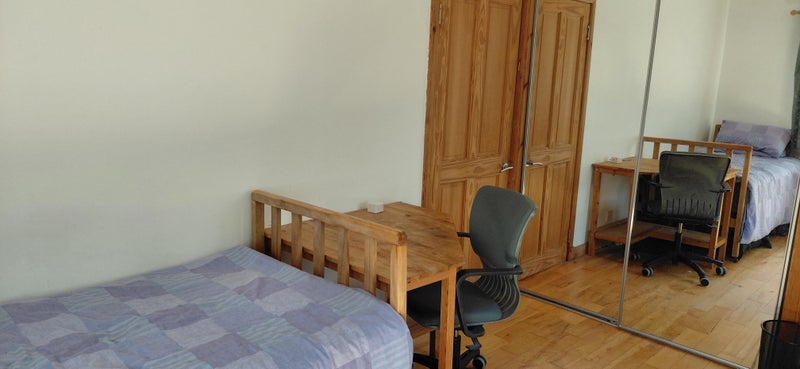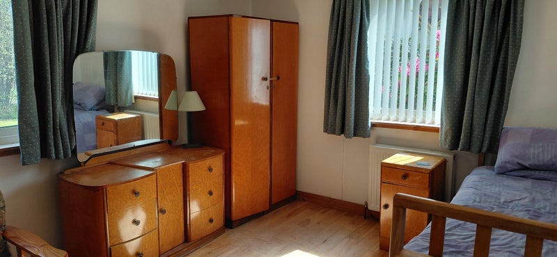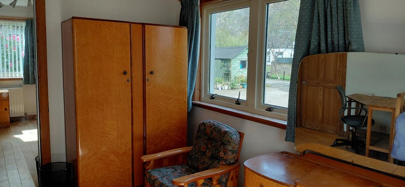 Shared use of shower room, laundry and cooking facilities. Furnished with single bed (which will be switched with a small double in June), bedside cabinet, desk, office chair, arm chair, two wardrobes dressing table and large shelved storeage cupboard.