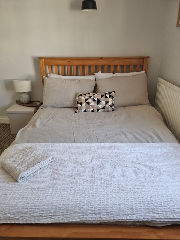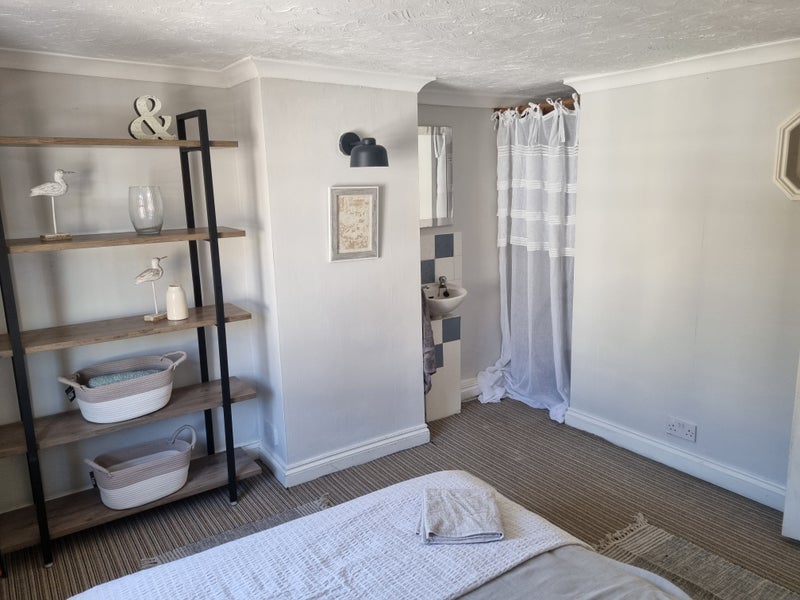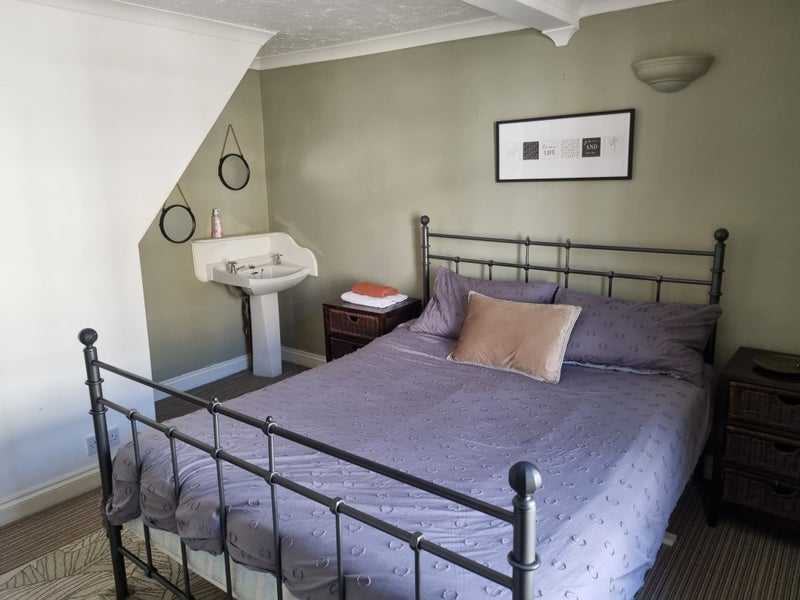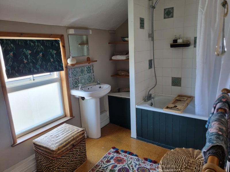 Upstairs there is a double bedroom with its own sink, and the shared bathroom. This has a bath with shower over and is spacious.