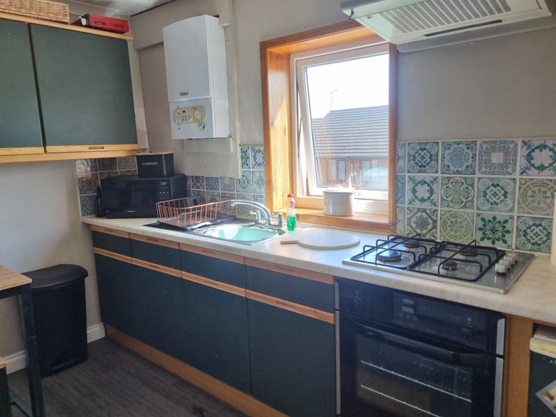 The house is over four floors. You enter into the living room with a small kitchen and dining area off. The kitchen is fully equipped and each room has an allocated cupboard.