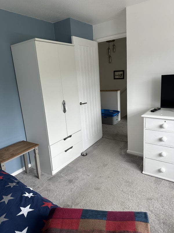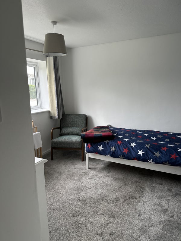 Lovely bright room with single bed in a family home available! Share kitchen, bathroom and living area. Nice garden which is available for relaxing. Seeking working person must like dogs. Towels and bedding provided and laundering can be arranged if required. All bills included.