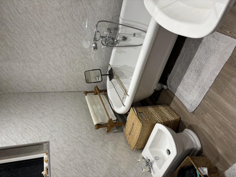 Room 1 has double bed wardrobe bedside table lamp plug points and ceiling hoist full length mirror dressing table room has a wet room with shower sink and portable potty