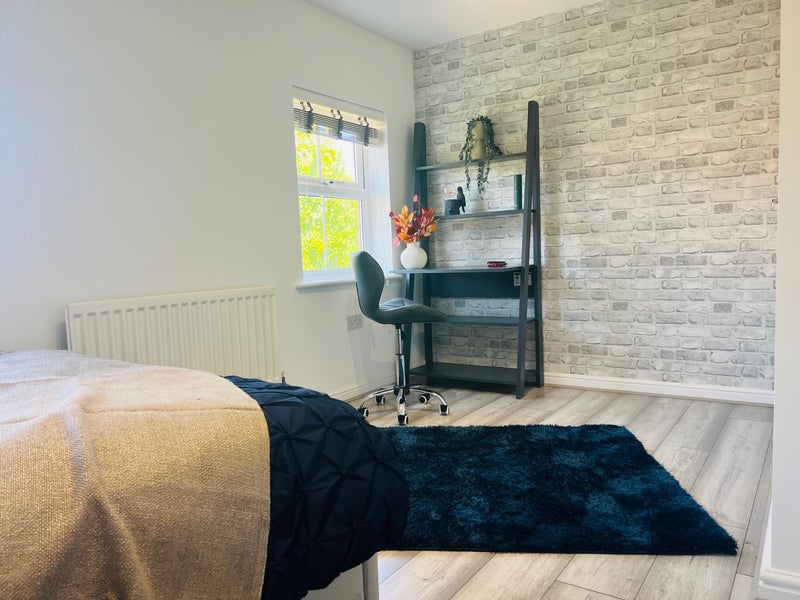 The house provides bright and spacious living space along with an attached en-suite to your room. The room is fully furnished with bed, mattress, wardrobe, desk and chair.