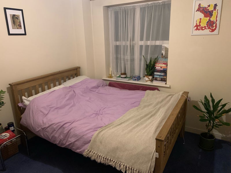 The room is a double and has a built in wardrobe/ cupboard with shelves and chest of drawers. The house has a garage and garden and lots of storage space.