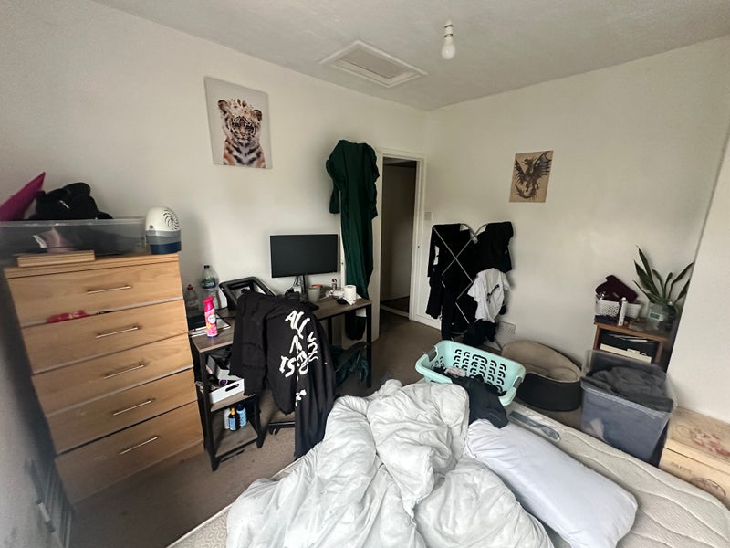 Short term room to rent out, I have drawers and a king size mattress you can use or I can remove from the room. Or if more convenient I will get a double bed in there for lodger. I have a cat and a dog. I’m super laid back and easy to get on with, currently using the room as an office and a laundry room but will of course clear out. Text me if interested how long you’d want the room
