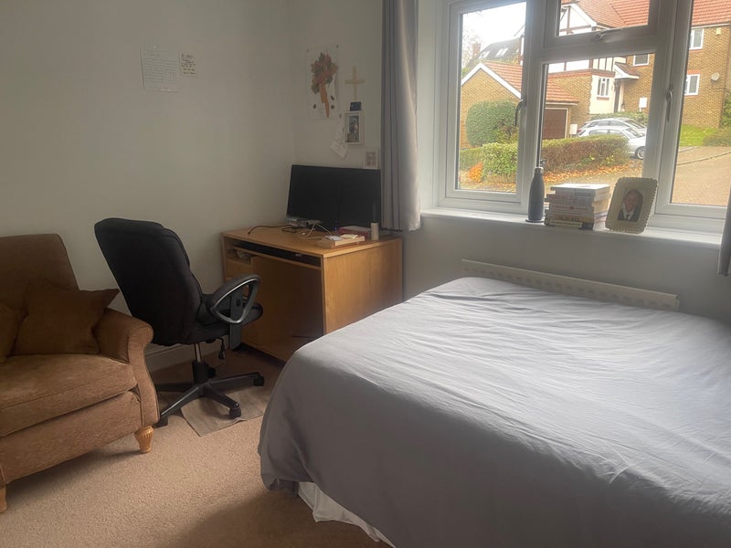 Quite bright Large Double room with triple floor to ceiling built in wardrobe and desk nicely furnished, over looking front. The en-suite is a Full size bathroom Available Now £750 PM inc for professional (SINGLE OCCUPANCY ONLY )