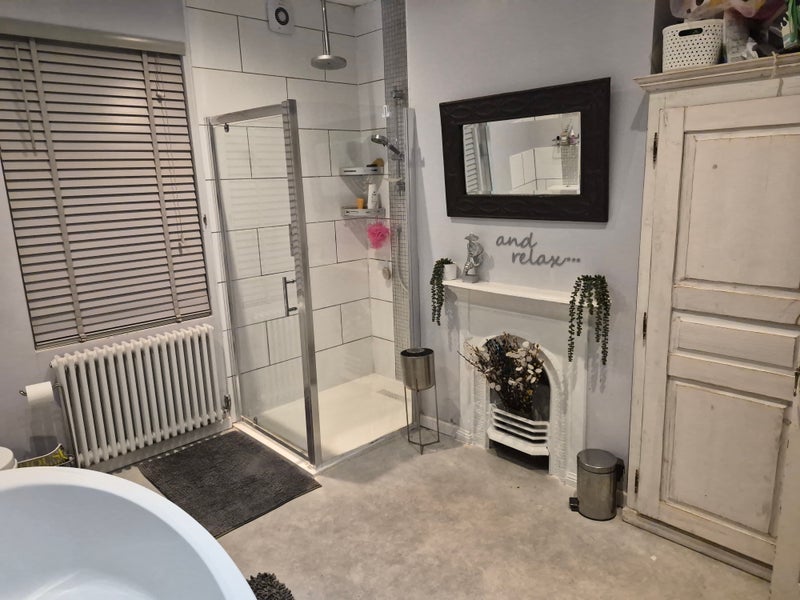 Clean and tidy Double room, fully furnished, good decor, wardrobe, double bed, wooden floors with rug, warm cosy central heated and TV with shared Kitchen and Bathroom. Downstairs toilet available beside bedroom. Friendly neighbours.