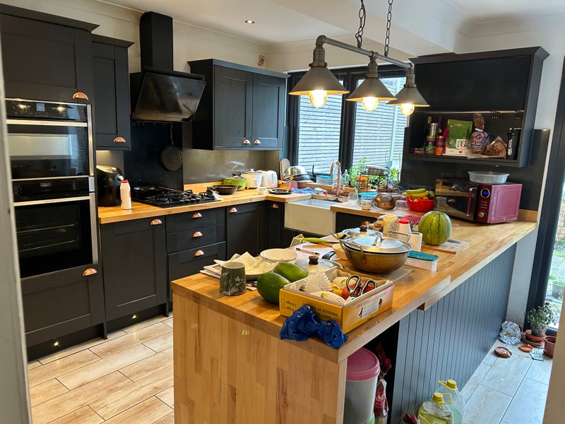 - Large kitchen with kitchen island