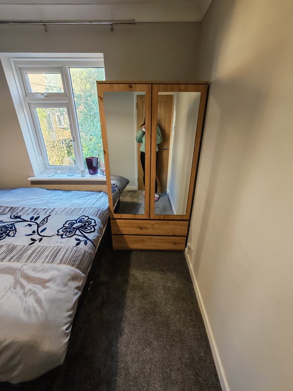 A spacious and well-presented double room is available in a newly decorated, cosy flat. The room comes fully furnished with a comfortable king-size bed, a double wardrobe, and a bedside table, offering plenty of space and storage.