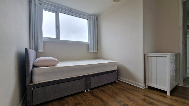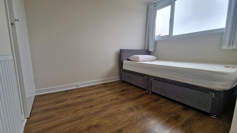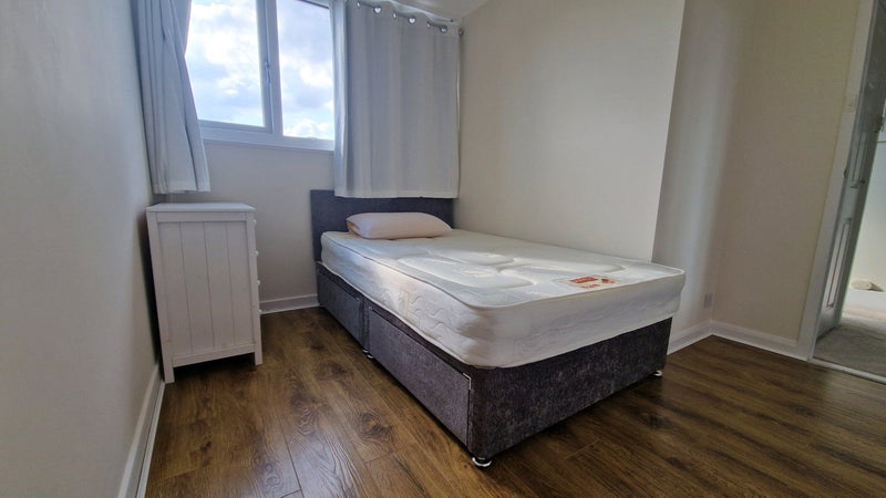 Newly refurbished double room with built in wardrobe. House is 1950's mid terrace with lots of space and a empty loft if needed to store things.