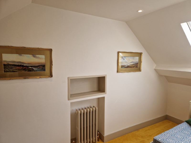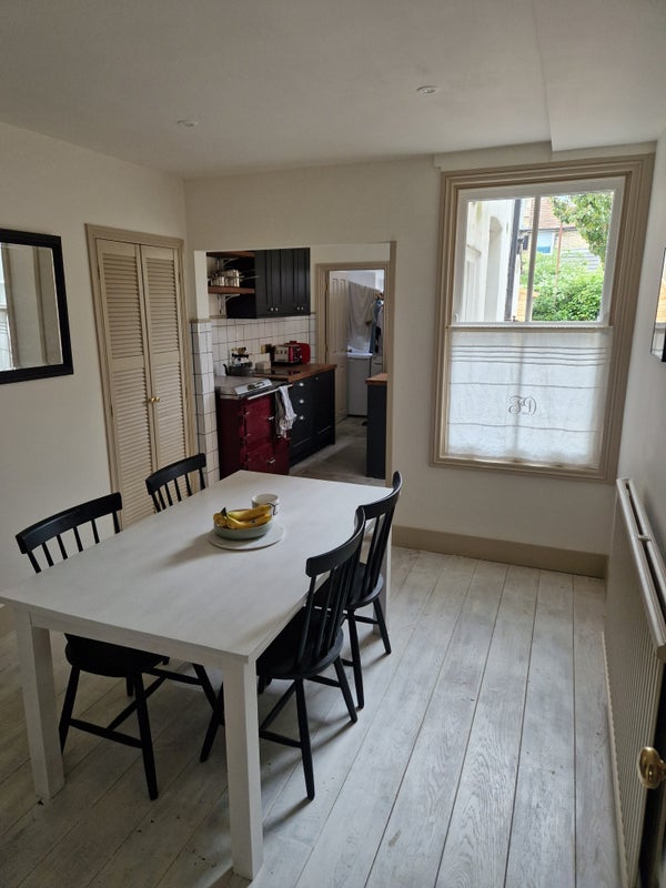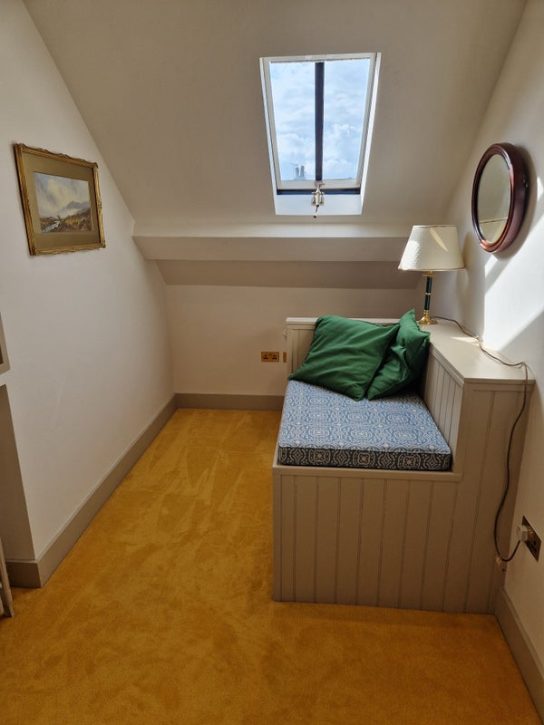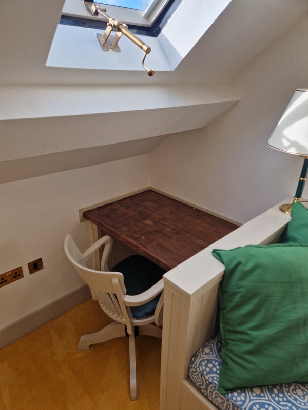 A small double bedroom, with desk and reading chair, on the top floor of a stylish and high spec renovation. The property is in the heart of Canterbury and you will have the top floor of this property to yourself with a new bed and additional storage space provided. The property comprises 3 floors - 1st floor: lounge/TV room (kitted out with a log burner and HD TV), kitchen with oak worktops and plenty of storage space and 2 fridges, a utility room with washing and drying machine and inbuilt clothes air drying system. 2nd floor: 2x bedrooms aswell as a communal shower room with rainwater head aswell as hairwash. 3rd floor: your own private room with small double bed, desk, reading chair, private staircase and storage area. There is a decent sized garden area with a padlocked shed to rear and parking available outside (permit must be applied for via council). Everything in this property is new and of the highest quality.