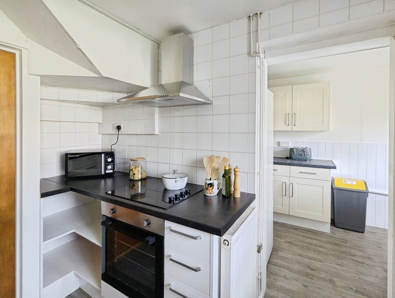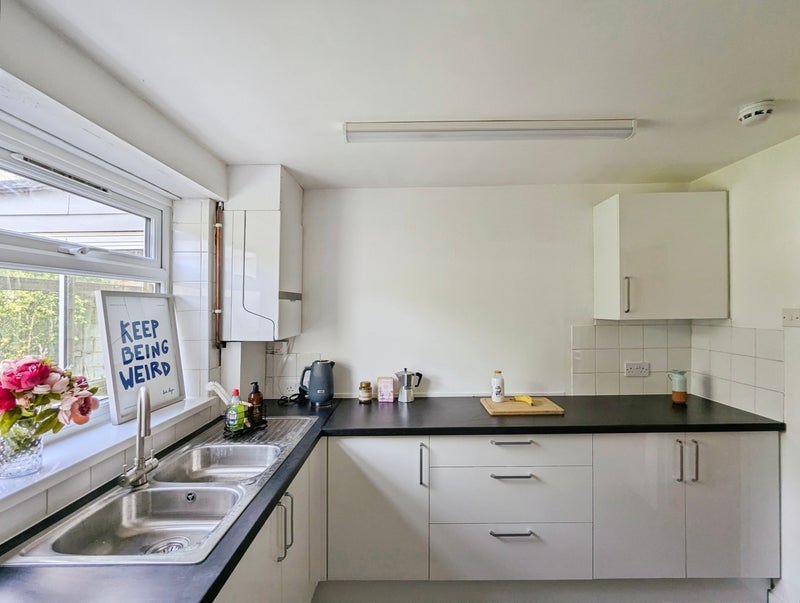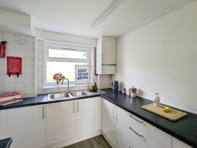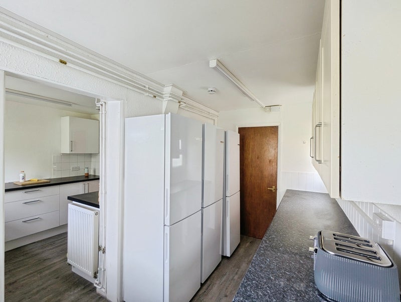This 6 bed 2 bath house (1 bathroom, 1 shower room and additional separate toilet) end-of-terrace house is well set up for shared living. Downstairs, there are two bedrooms and a spacious kitchen with everything you need — oven, hob, microwave, toaster, kettle air-fryer — plus clearly labelled storage so everyone has their fair share. The utility area includes a washing machine, three full-size fridge freezers, and extra storage, leading to a downstairs shower, separate toilet, and access to a lovely garden. Upstairs, there’s a full bathroom with a shower over the bath, toilet and sink, and three more bedrooms. The sixth bedroom is tucked away up its own private staircase, offering a bit of extra privacy.