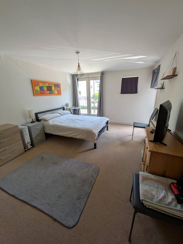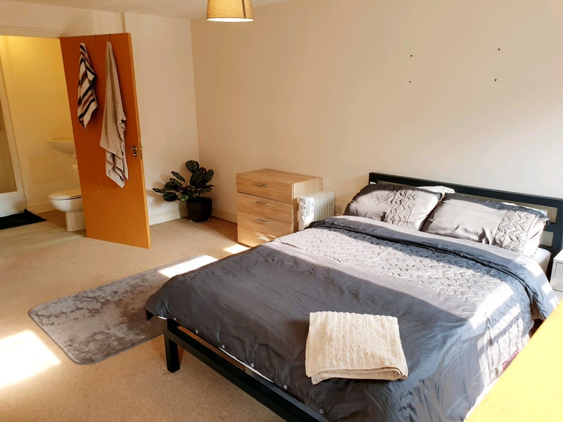 The apartment is very large, with two bedrooms. I'm looking to rent out the larger bedroom, which has an ensuite bathroom.