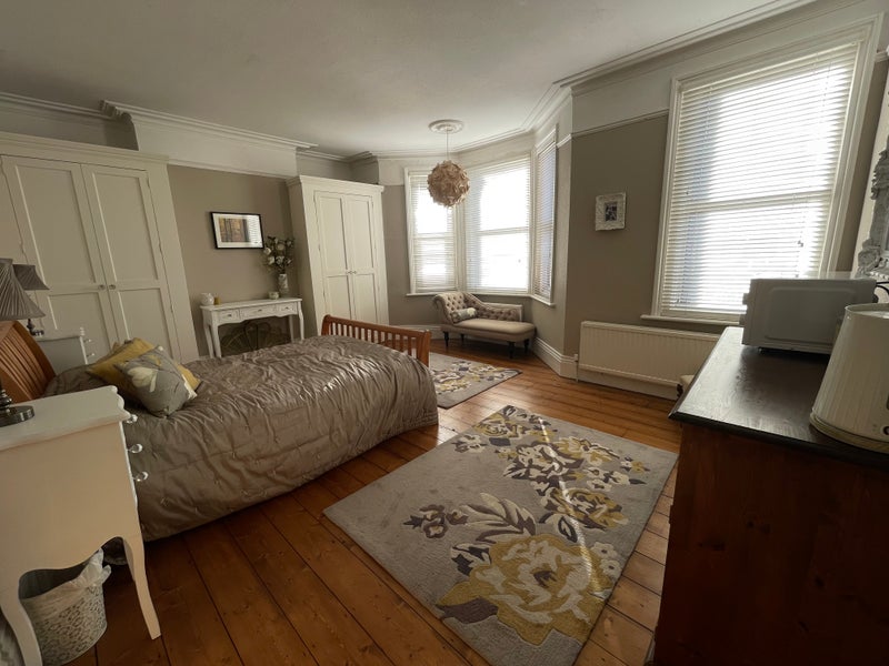 Furnished double bedroom; kitchenette included; room includes bed, chaise longue, table and chair (available if required) 2 double wardrobes with 1 fitted sets of drawers; dressing table, 2 bed side tables; shared family bathroom and kitchen; size of room- 4.85 x 4.40 m