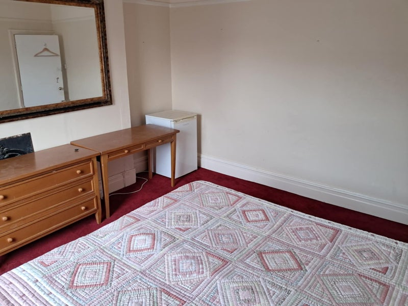 This is a very spacious double room (with basin and fridge) in a huge Victorian terraced property by the sea in Cliftonville. It is on the top floor, shared with one other, and the top floor has its own kitchenette (air fryer, microwave) and large luxury bathroom.