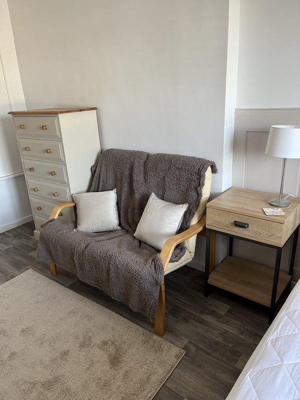 Bright and airy furnished double bedroom available with own downstairs shower room, access to shared kitchen and off road parking. The property is easy walking distance into Cranbrook town centre but situated in a quiet cul-de-sac.