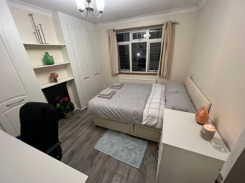 A bright and comfortable double room is available in a quiet family home. Perfect for a female professional looking for a peaceful and tidy place to live.