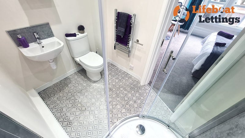 Room 3: £695pcm - This spacious right room is situated on the ground floor at the front of the property. The room includes a double bed and mattress, bedside table, chest of drawers, tea station and a flat screen TV. The room also has an ensuite shower room.