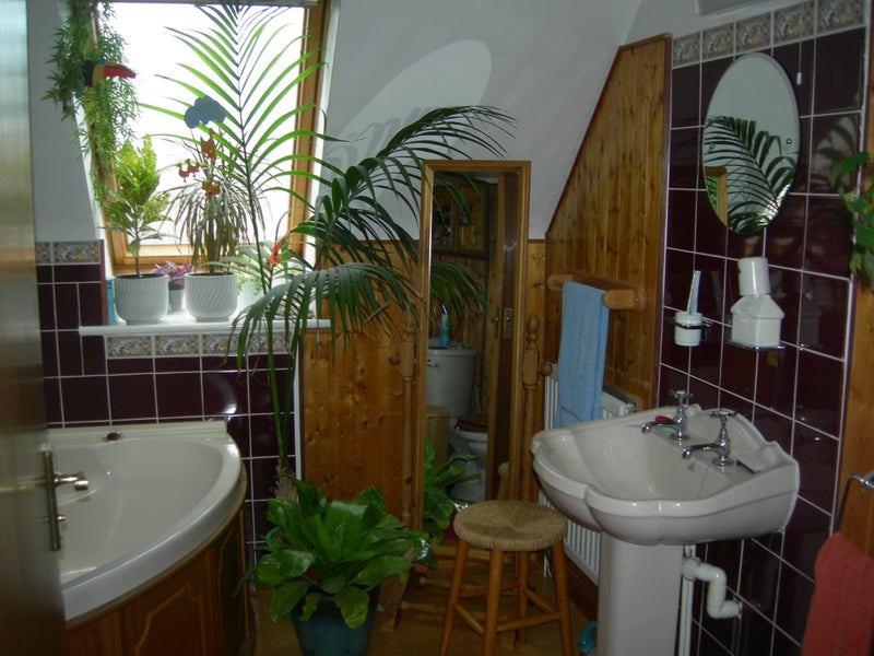 The bathroom has a corner bath, toilet and basin. There is also a shower room for your use on the ground floor. I would encourage use of the shower when house has guests, so the hot water can be shared by all.