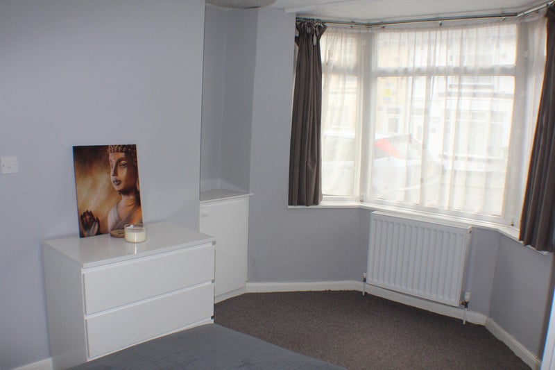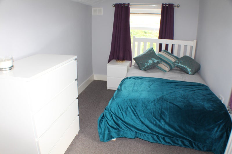 Room 2: £370 Second/top floor double bedroom overlooking the rear garden and includes a double bed, desk, chest of drawers and bedside table. A wardrobe has now been added to the room.