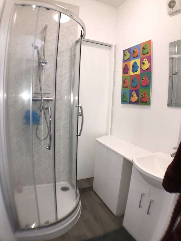 Room 3: This double bedroom is located at the rear of the house on the first floor. The room has been stylishly furnished to a very high standard and includes a double bed, wardrobe, chest of drawers, two bedside tables and additional built in wardrobe. The property has two shower rooms and two toilets shared between four tenants.