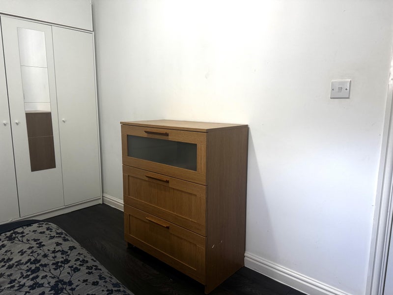 Furnished with a double bed & mattress, double wardrobe, and 2 chest of drawers
