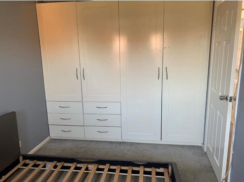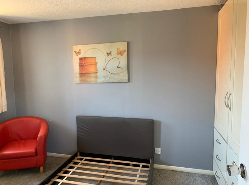 This is a Double size bedroom for single occupancy in a spacious, gorgeous semi-detached house with fully equipped kitchen including breakfast bar, washing machine, fridge freezer, microwave, kettle, toaster, crockery, cutlery etc. You will have your own kitchen cupboard, fridge shelf and freezer compartment.