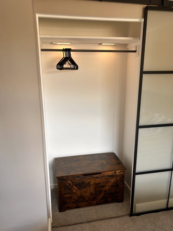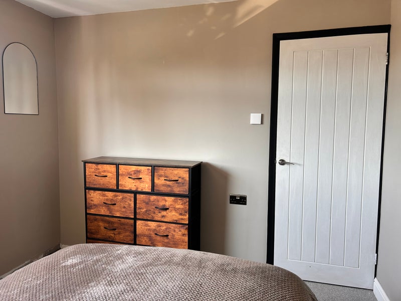 Newly decorated double room with bed, draws and built in wardrobe. Ready to move in as soon as possible if interested.