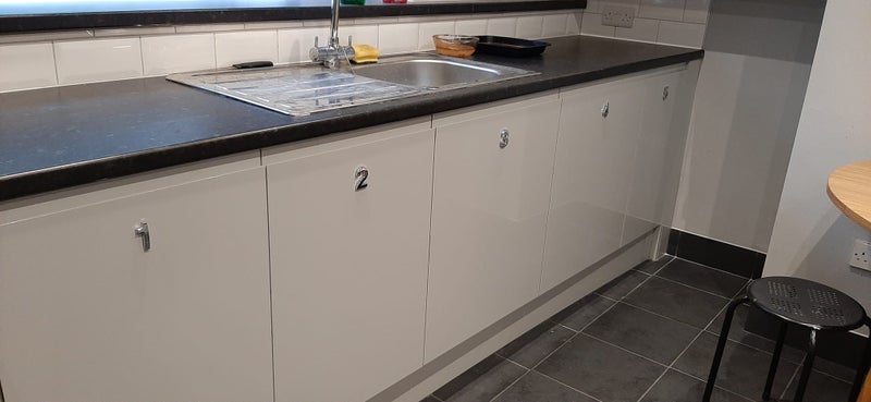 The house has two shower rooms, large kitchen with washing machine, cooker, fridge and freezer. Cupboards are marked with your room number so you have your own storage areas. The house has double glazing and central heating with radiators in each room.