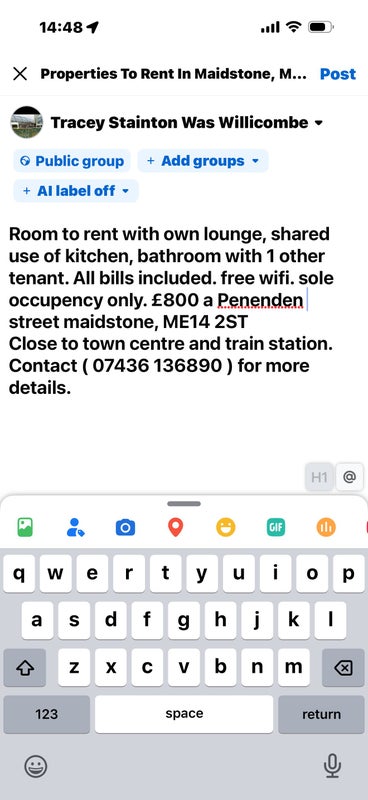 single occupancy room to let own private living room. shared kitchen and bathroom all bills included free wifi. close to town walking distant