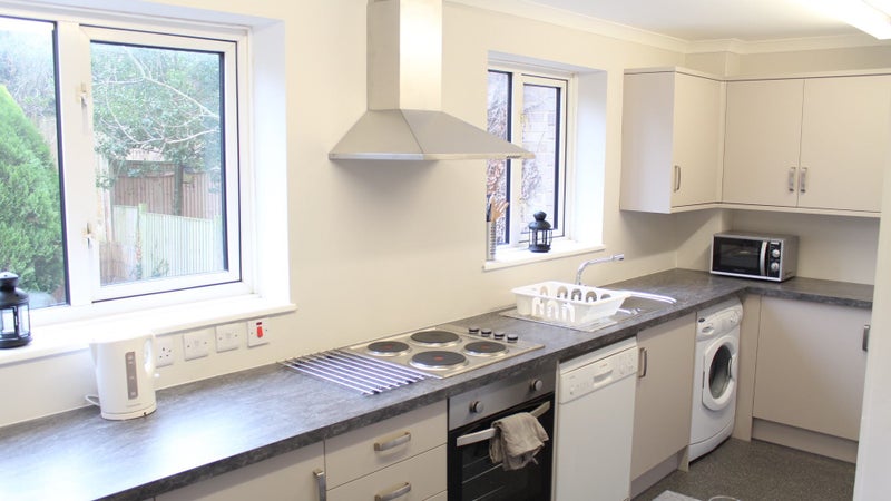 The house has a large fully fitted communal kitchen/dining room, (fully furnished with dishwasher, washer-dryer…), 2 bathrooms, a large garden and parking spaces.