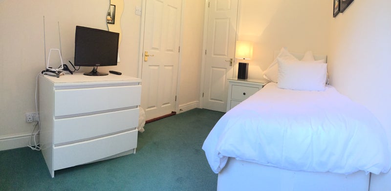 Opportunity to join a quiet and freindly modern home. Nicely situated for motorways and or town centre. Bus stops 10 minuit walk. Spacious room and house. Smart TV’s. Bed etc. Downstairs WC facilities and washroom. House includes a very large and spacious kitchen/diner. Kitchen is very well equiped with coffee machine drinks fridge and china and pans cutlery etc. Utility room with washing machine and tumble drier. All bills included. Much more. Call up to view