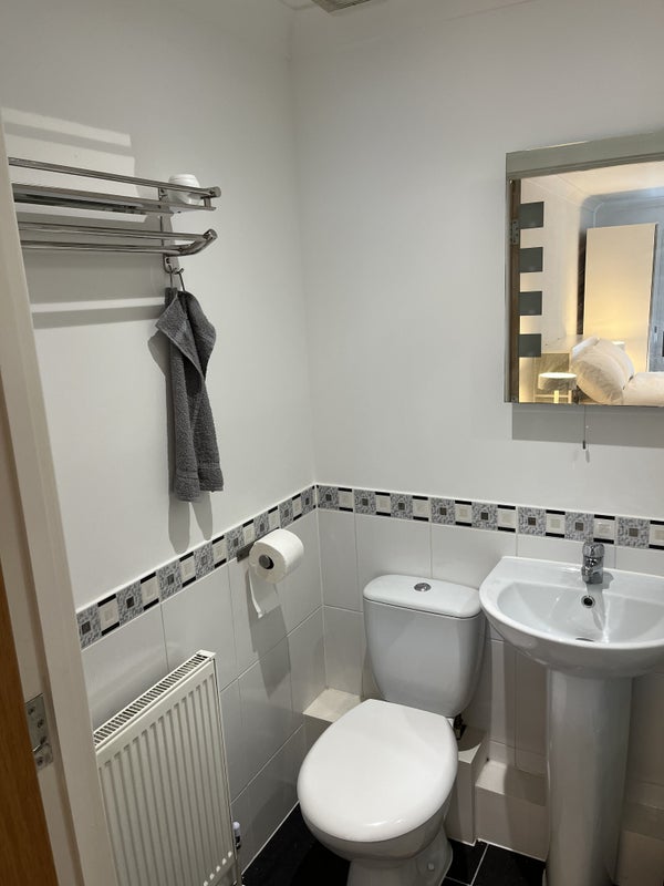 This spacious en-suite has comfortable furniture, bedding, toiletries and an internal-only lock. The kitchenette and living space are shared. Sorry - strictly no smoking and no pets please.