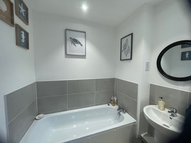 Short walk to restaurant's and cafe's in high street .Free covered parking for one car. Shared bathroom which has a stand alone shower and separate bath. Separate downstairs toilet. Shared kitchen, gas hob, electric oven, microwave, washing machine, breakfast bar etc. Light cooking please. Superfast WIFI. Double glazing, central heating. The room is a large double, with a king size bed easy chair, a desk and office chair, large chest of drawers. Can provide freestanding hanging rail if required. Blinds and curtains. Bed linen, towels provided. Close proximity to Greatstone, Littlestone, Ashford, Folkestone, Hythe, Tenterden. Stations for high speed trains to Ebbsfleet, Stratford, London. Port of Dover, historic Canterbury, Ashford Outlet in easy reach. Good access to M20, and surrounding areas. Front room is not shared as is used as a homeworking office by me. Feel free to contact me with any queries.