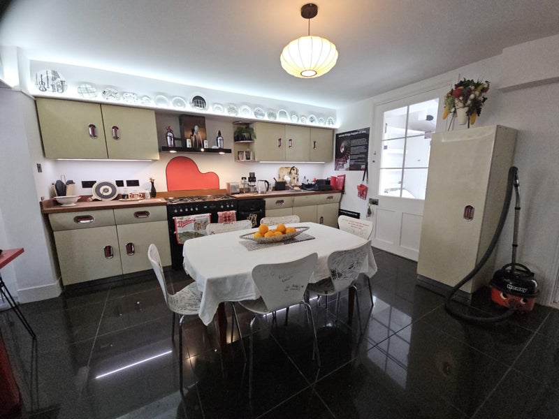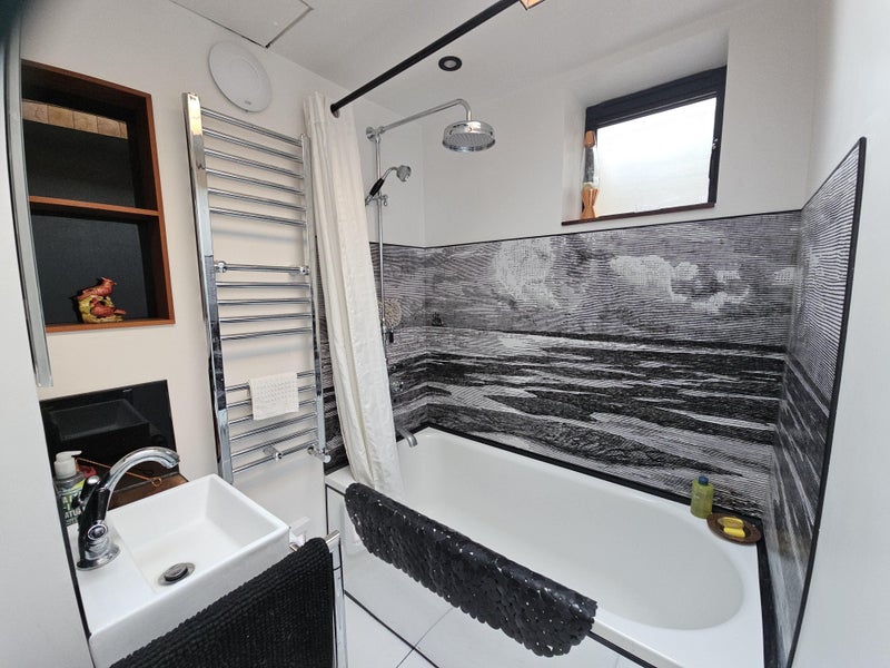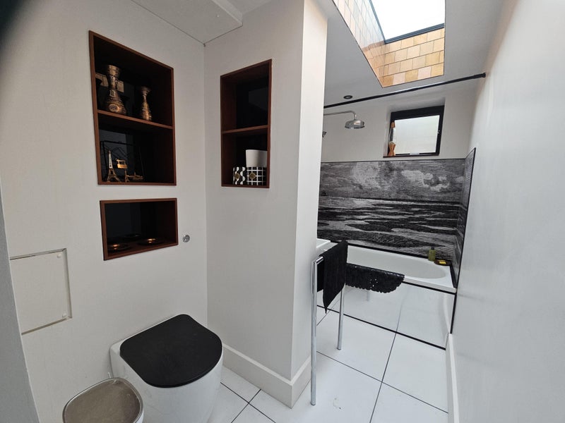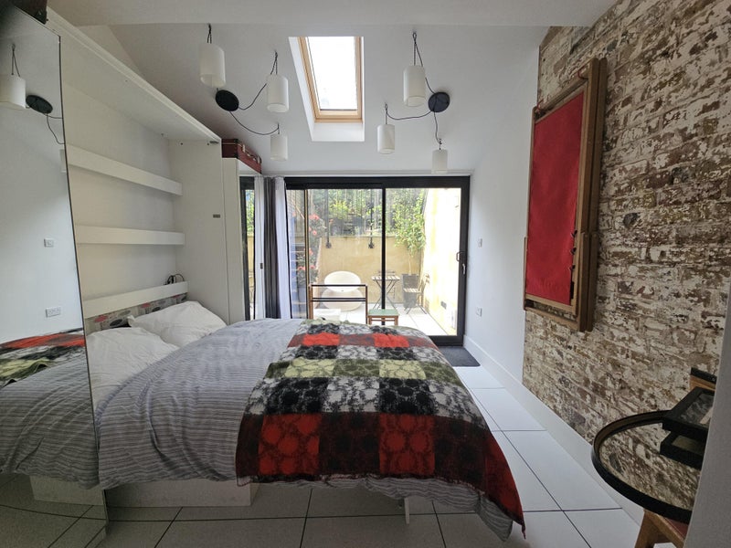 An excellent flat is available to let for £1100 per calendar month in designer's spacious Victorian property. It is a very comfortable furnished main room with kitchen, dining tqble, and living area with 2 x sofas one of which is a double sofa bed. There is a desk and and chair and plenty of storage space. It is for a 1 or 2 people and has a comfy queen sized double bed and is very cosy!