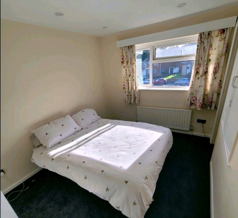 Large furnished double bedroom, new carpet, fully refurbished, built in cupboards and good levels of light throughout window facing the large front garden and good storage (cant be seen in the photo though). Bills and Internet included. Good sized rear garden. New kitchen and fully stocked with all usual white goods. Shared living area with TV, sound bar and smart lights throughout house, with remote. Available from 1st December 2025, accepting viewings immediately. Any questions or queries, please don't hesitate to ask. Thanks