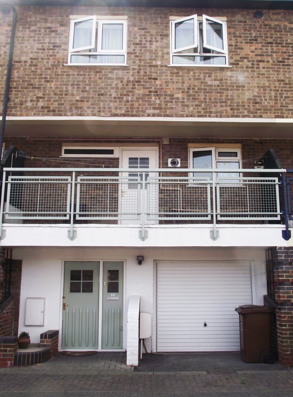 The property features a comfortable living room and a small private garden at the rear. Off-street parking is available in front of the house.