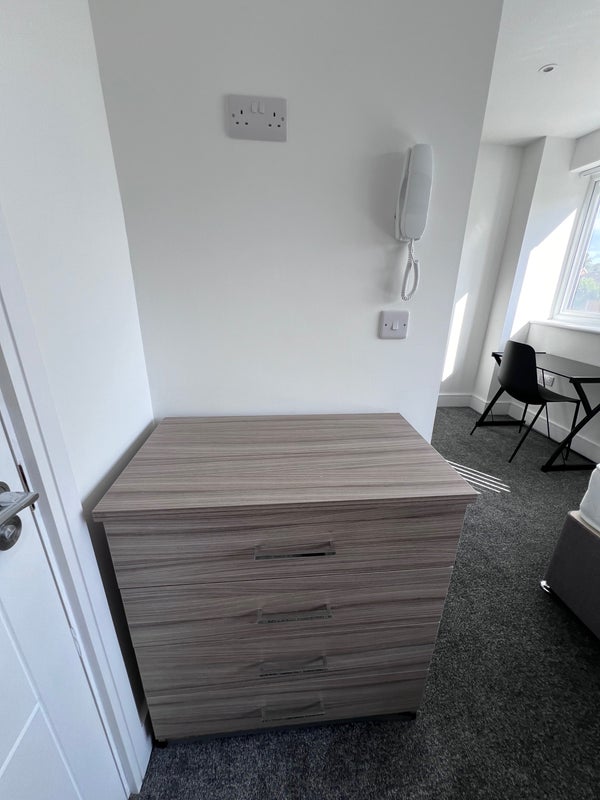 - Double bed, wardrobe, chest drawer, bedside cabinet with lamp and full length mirror