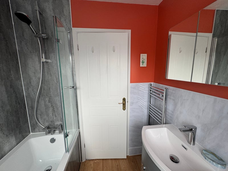 On offer is a large double bedroom fully furnished. Has just been redecorated. With the room comes its own newly refurbished bathroom with bath and shower over. Bedding supplied if required. There is on street parking available.