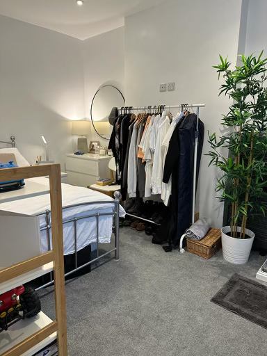 The room is very bright and has new carpet, it comes furnished.