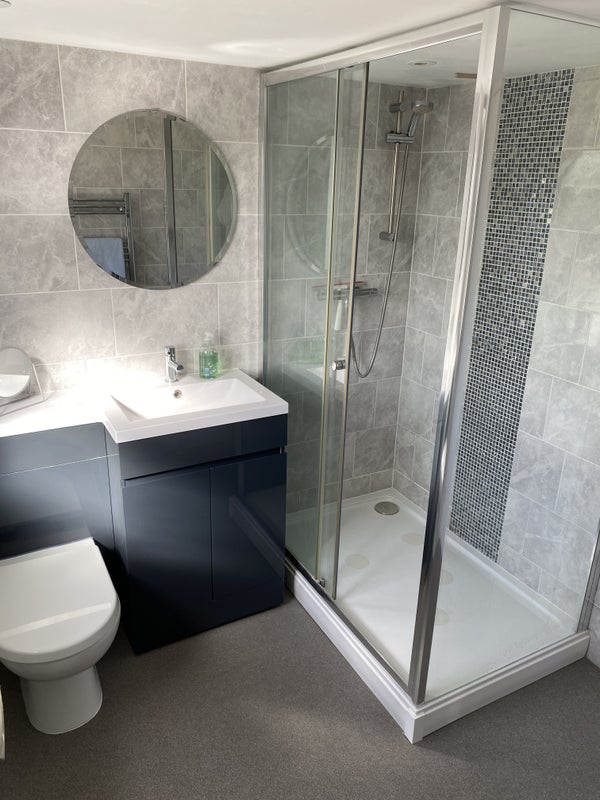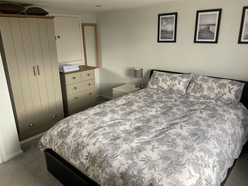 Hi I have a large en suite room to let in 4 bed house. The room has a king size bed, lots of storage, TV, mini fridge & kettle along with your own private bathroom with a shower.