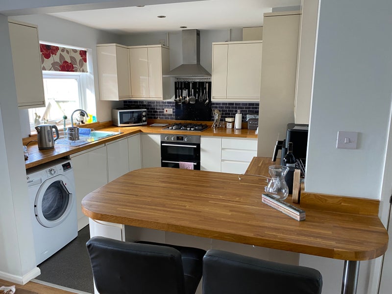 You are free to share a comfy lounge/diner with BT TV & excellent wifi. The kitchen has all usual appliances. There is ample parking on the drive & a garage for storage. Smoking allowed in the garden only. I have 1 elderly cat who shouldn’t bother you too much. Unfortunately I cannot accept any other animals.