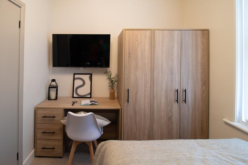 * Furnished with bed, wardrobe, desk & chair