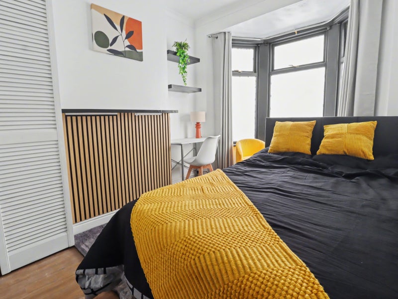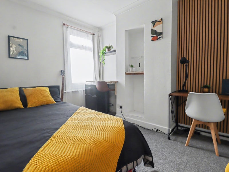 Inside the home, you can see lovely modern refurbishment throughout the home making for fresh and welcoming light and airy cosey feel with neutral decoration. The shared facilities are a spacious lounge area, Kitchen and Bathroom with a rear garden too. The home currently has three available double rooms fully furnished with brand new double beds, desk areas and storage options provided either via internal storage or additional storage provided. Two of the rooms also include their own mini fridge/freezer, providing additional convenient personal food storage.