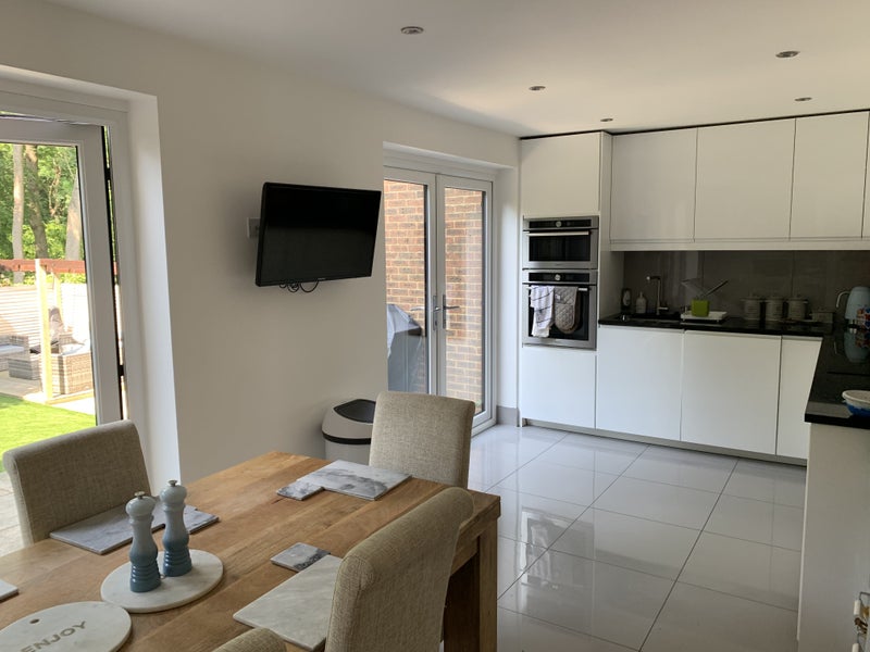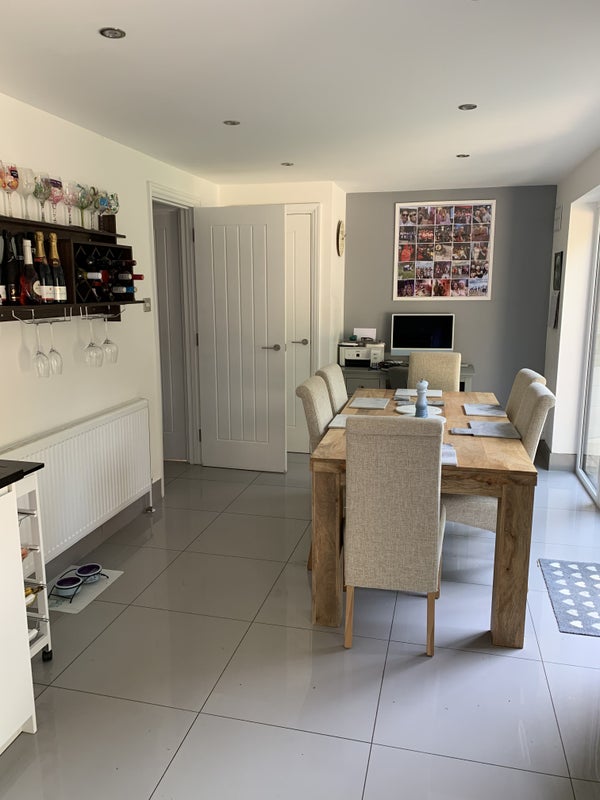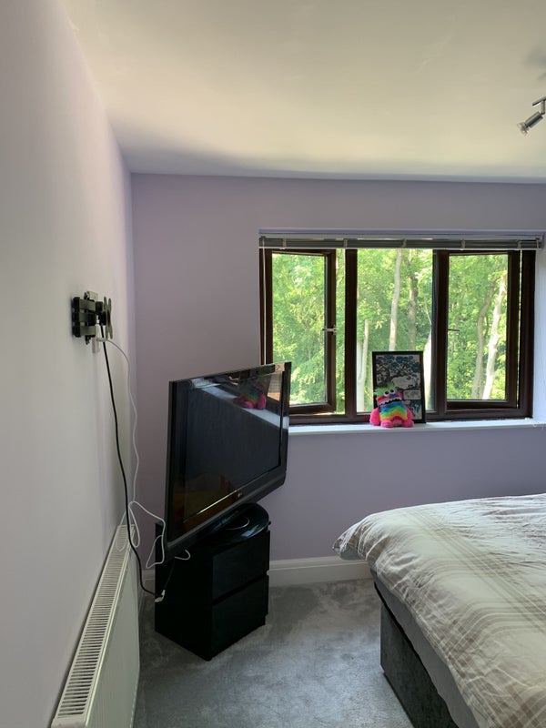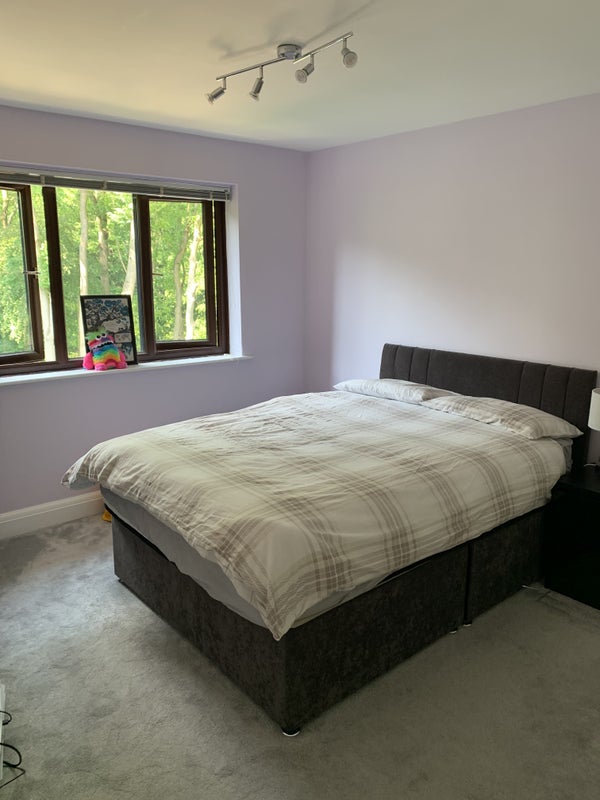 The bedroom itself has a double bed and mattress, built in wardrobes and chest of drawers. There is a tv in the bedroom. The one in the photos is the current lodger however a tv will be mounted to the wall before you move in. There is plenty of space to hang clothes. You will have access to the main bathroom which is shared with another lodger however it is cleaned every day. You have your own fridge and freezer space, you are welcome to use the outdoor living space which benefits from rattan furniture, a bistro set and bbq. You will have access to the kitchen to cook if needed and washing facilities in the garage.