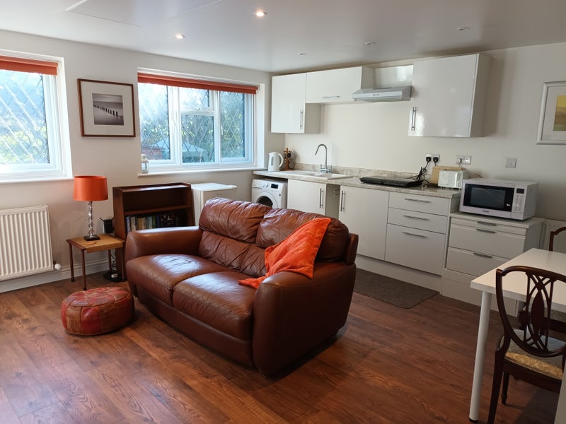 The annex has a large bright open plan living room with equipped kitchen, a bedroom with double bed and memory foam mattress, smart TV, WI-FI, a modern shower bathroom and comfortably furnished.