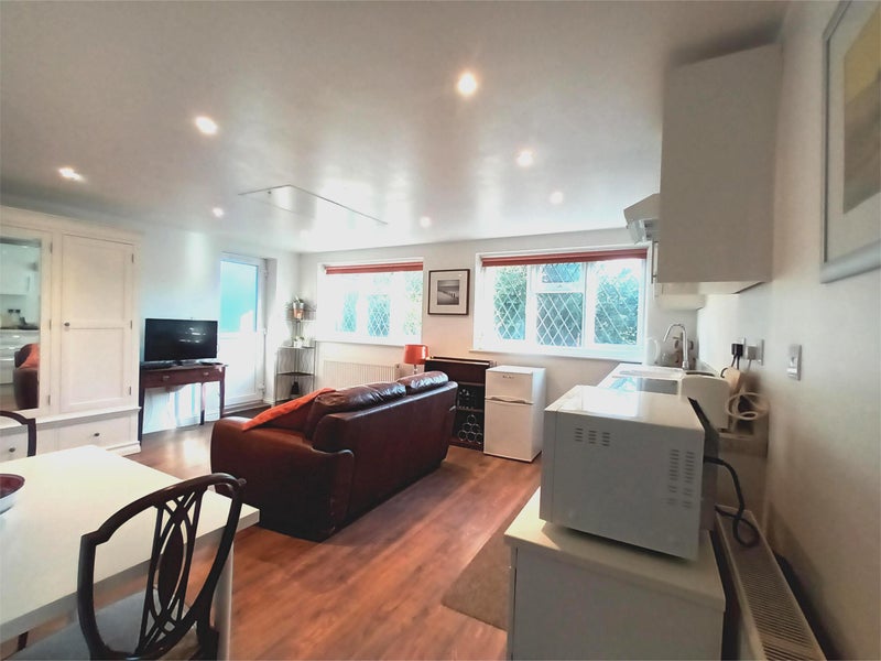 Detached 1-bed apartment between Westerham and Oxted available for a lodger (1 person only, no pets) who will have exclusive use of the place, parking and direct access to a private patio garden from the studio front door.