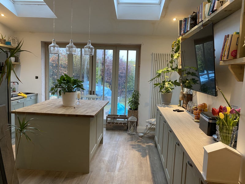 Open Plan Kitchen/Dining room fully equipped for dining and a desk available for working from home! Plus fully fitted kitchen for every day use opening out onto a lovely garden with bifold doors. Fantastic in the summer.