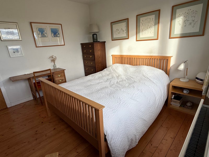 Large light-filled and comfortable room with a double bed in a cosy detached bungalow in Westerton.